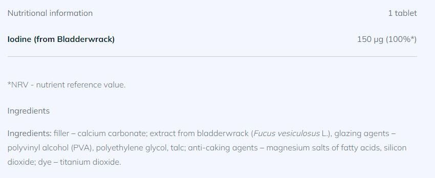 OLIMP Kelp / 60 Tabs contains brown algae, which are the richest natural source of iodine.