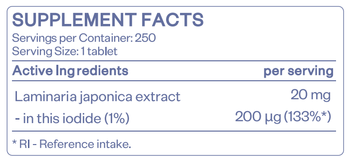 KELP (iodine) is a rich source of iodine and other beneficial substances that support normal body functioning and hormonal balance.