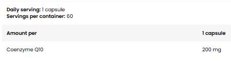 Coenzyme Q10 Ubiquinone 200 mg е хранителна добавка под формата на капсули, която доставя висока доза коензим Q10 — естествен антиоксидант и ключов компонент за клетъчна енергия.