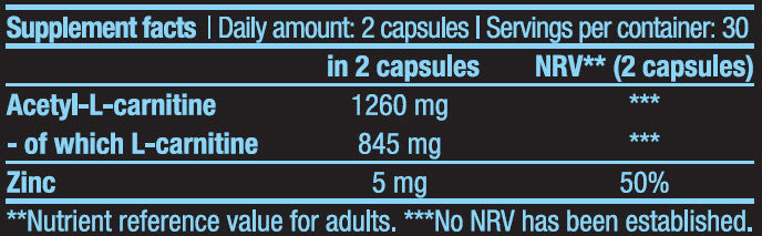 Acetyl-L-carnitine (ALC) is a derivative of carnitine and is produced naturally in the body. Carnitine is involved in the metabolism of carbohydrates and proteins and in the transport of fats to the mitochondria for energy production. ALC helps to increase the level of carnitine in tissues and can enhance this effect, promoting a more efficient metabolism. This makes ALC one of the most researched substances for its ability to slow down aging and support the brain and nervous system.