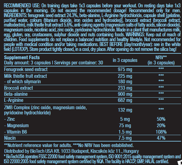 Black Test from Biotech USA is an ultra-potent formula for increasing testosterone levels and endurance in the gym, giving you more energy, strength, and motivation.