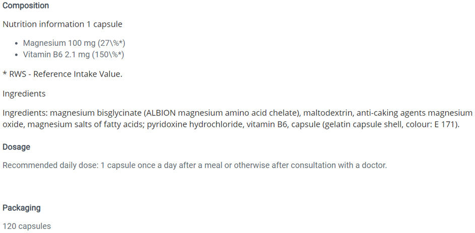 Chela-Mag B6 from Olimp uses Albion® magnesium bisglycinate – an organic form with high absorption and good tolerability. The combination with vitamin B6 improves the absorption of magnesium and supports energy production in cells.