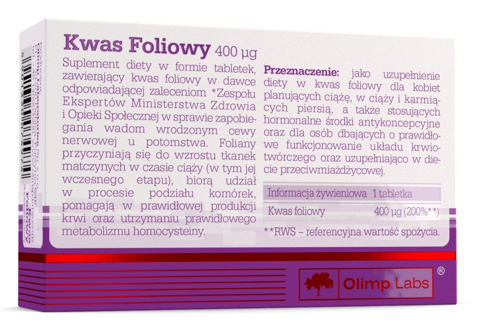 OLIMP Folic Acid / 60 Tabs is a dietary supplement in capsule form that supplies the necessary daily dose of folic acid for normal cell division and overall health.