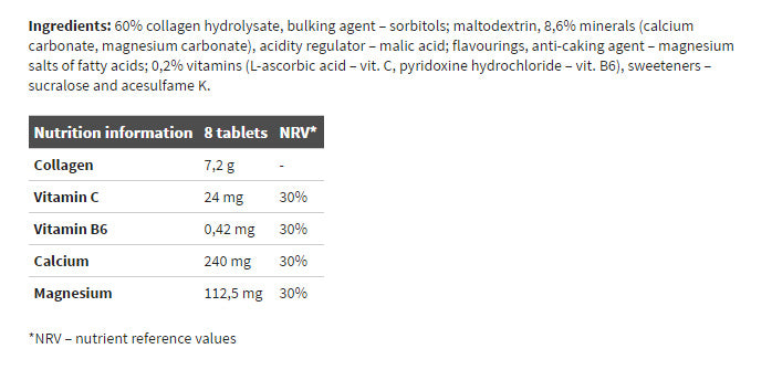 Kolagen Activ Plus Sport contains a high amount of collagen and added minerals such as calcium, magnesium, vitamin C and vitamin B6. As we age, the body loses its regenerative capabilities, which can affect the skin, nails and hair, as well as joint health. The product supports the restoration of joint and connective tissue, improves its elasticity and protects the skin, hair and nails, while simultaneously supporting immune function.