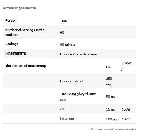 Licorice Zinc + Selenium combines natural active ingredients that work synergistically: licorice extract supports the endocrine system and hormone balance, zinc participates in the normal functioning of the immune system, tissue regeneration and skin health, and selenium serves as a powerful antioxidant and is important for thyroid function.