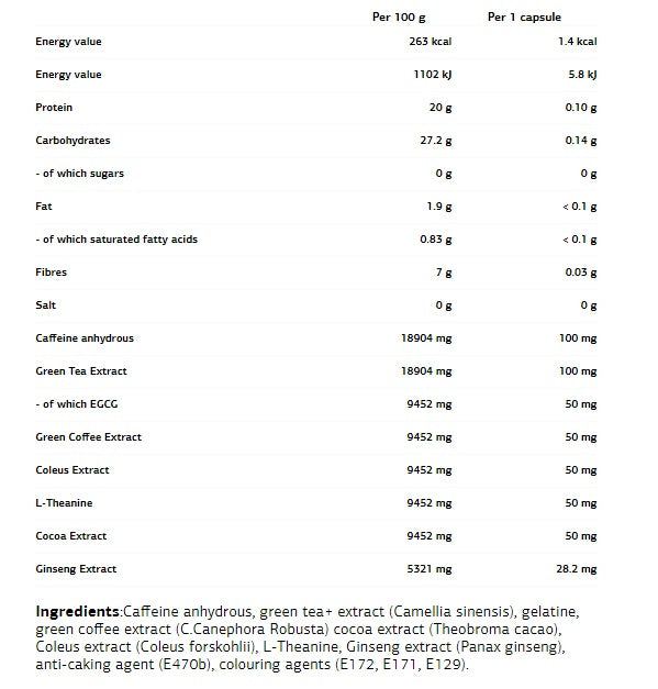 • Green tea and green coffee extracts provide metabolism stimulation and antioxidant protection.