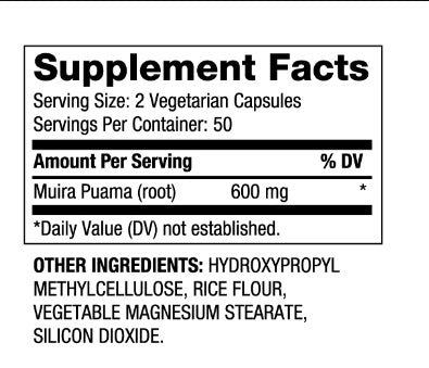 Muira Puama is a traditional Amazonian tree, the bark and root of which are the main parts used. Local people call it the "potency tree" and use the plant as an herbal tonic to maintain vitality and general well-being. Its organic origin guarantees purity and quality for long-term use.
