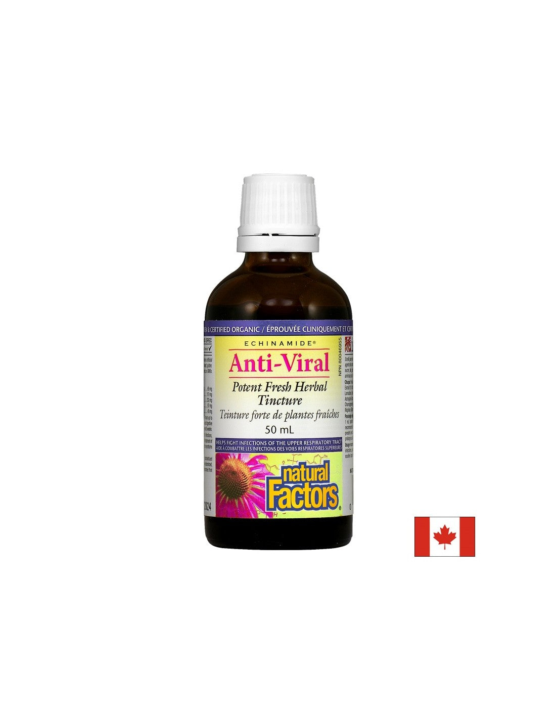 Anti-Viral is a powerful herbal liquid blend from Natural Factors that helps with cold and flu symptoms. It also has antifungal and antibacterial properties that help improve overall health and function. The Anti-Viral formula harnesses the power of nature by combining the most researched and studied herbs that support immune system function. Anti-Viral harnesses the power of patented Echinamide®, a super extract of Echinacea that provides high levels of alkylamides, polysaccharides, and chicory acid, the three key active ingredients responsible for Echinacea’s effectiveness in clinical studies. Echinamide® contains these ingredients from Echinacea, as this species contains the highest levels of alkylamides, chicory acid, and polysaccharides. Organically grown in accordance with the California Organic Food Act of 1990 and certified by NOOA.
