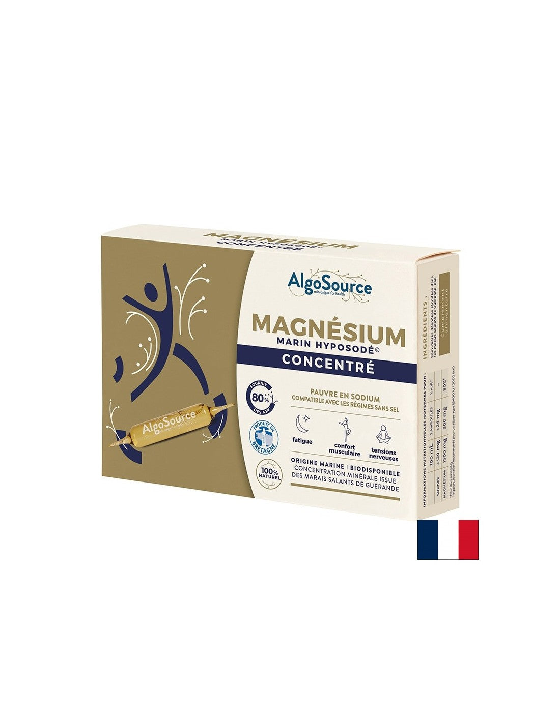 Една от най-съществените разлики между Magnésium Marin Hyposodé Concentré и стандартните магнезиеви добавки се крие в произхода и формата на магнезия. Източникът е соленото езеро Геранд, изключително екосъобразна и минерално богата зона, където морската вода се изпарява естествено от слънцето и вятъра, без термична или химическа обработка. Това съхранява естествения хелатен профил на магнезия, който се усвоява лесно от тялото.