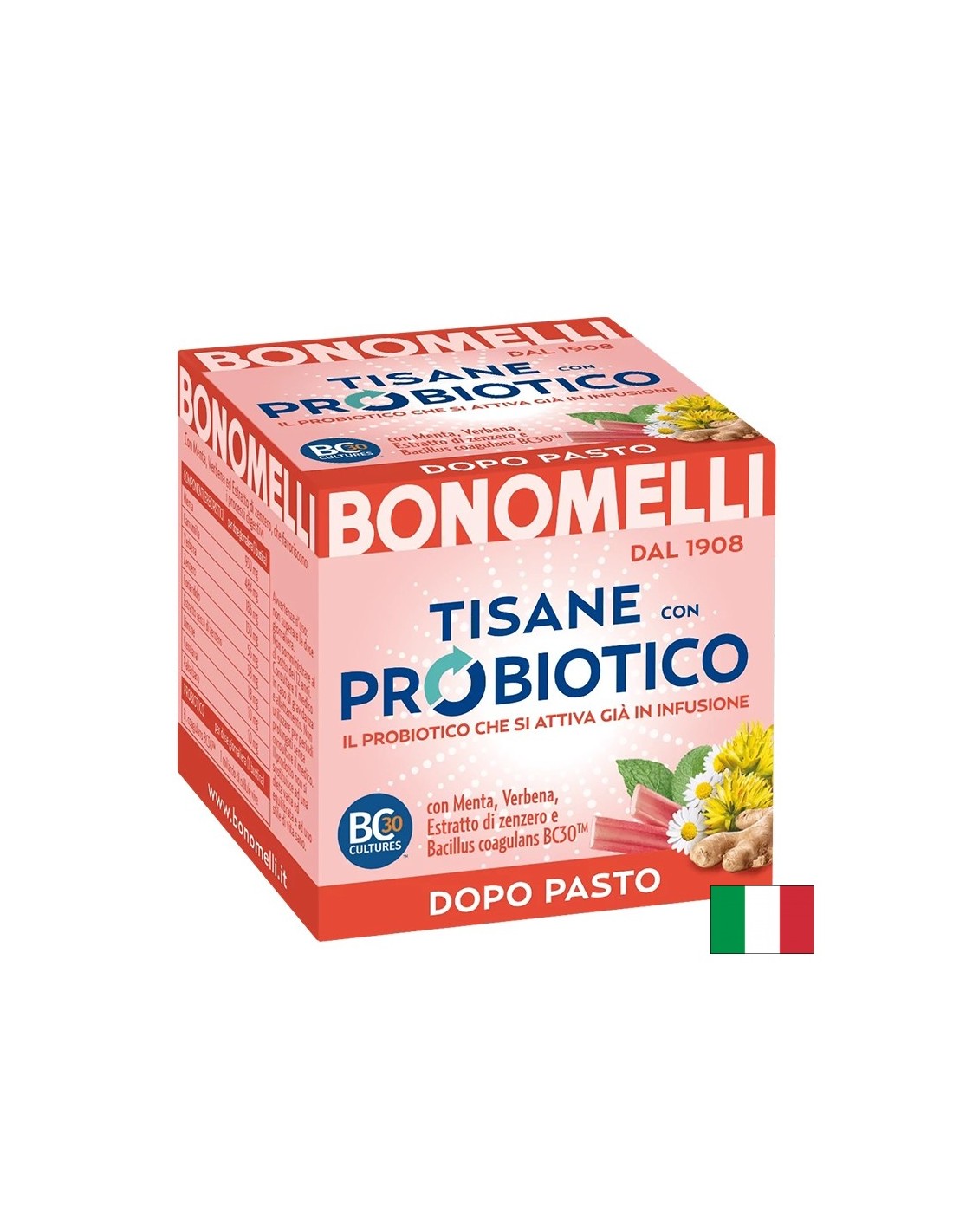 Освежаващ билков чай с пробиотик. Уникална комбинация от специално подбрани висококачествени лечебни растения. Здравословен продукт на италианския бранд Bonomelli.