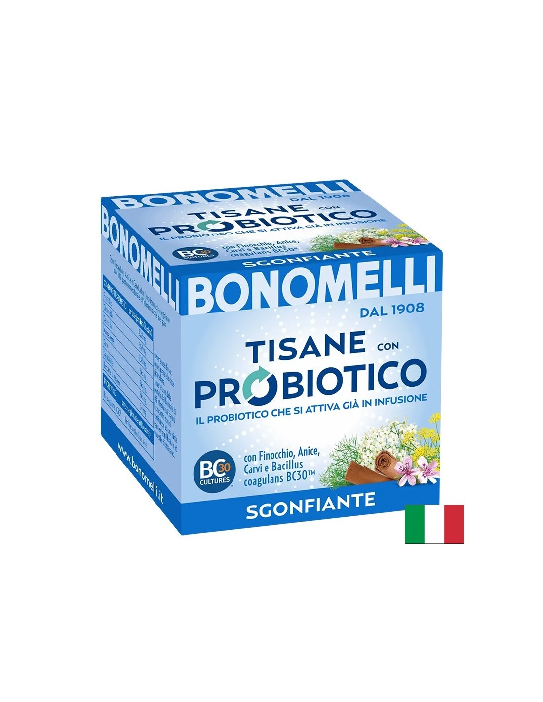 Чай от билки и с пробиотик на италианския бранд Bonomelli. В уникална комбинация са съчетани резене, лимонова трева и канела касия. В състава на чая са включени още лайка, зелен анасон и джинджифил. Към тях са добавени 1 милиард живи клетки от пробиотика Bacillus Coagulans BC30™.