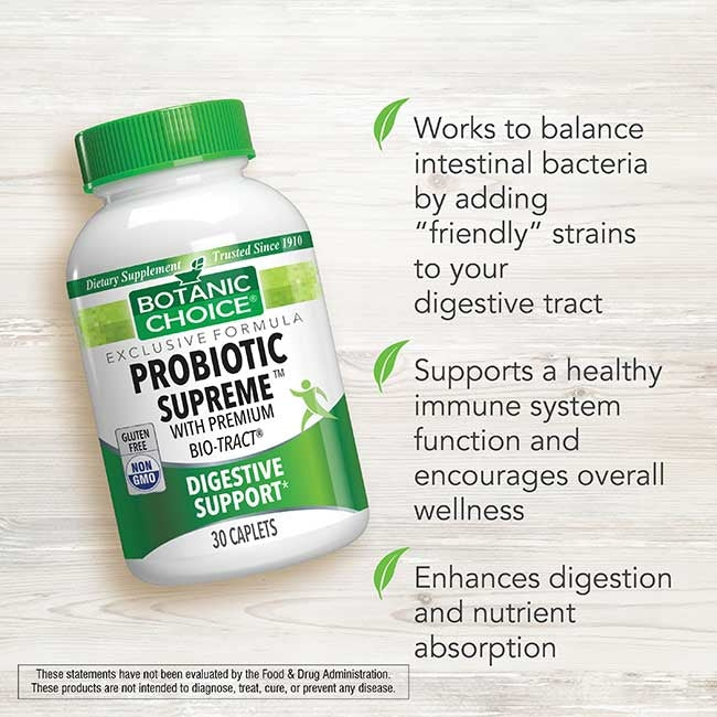 Probiotic Supreme is a premium formula created by Botanic Choice that supports intestinal balance and overall vitality every day.