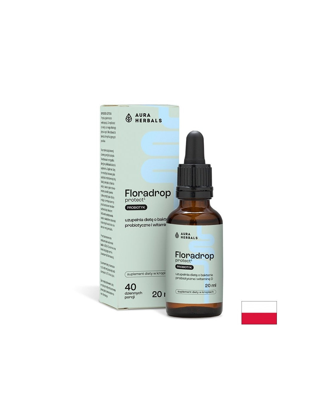 Флорадроп Протект (пробиотик + витамин D3) на полския бранд Aura Herbals е натурален продукт в подкрепа на стомашно-чревния тракт и имунната система.