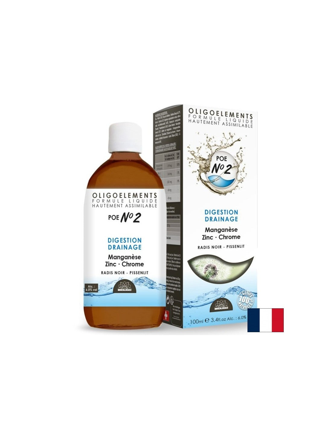 POE N°2 Digestion Drainage Manganese Zinc Chrome / Manganese, zinc, chromium + dandelion and black radish extracts, 100 ml is a food supplement from Propos'Nature, France. The formula includes manganese, zinc, chromium, dandelion extract /Taraxacum campylodes/ and black radish leaf extract /Raphanus raphanistrum/. The product contributes to normal digestion, as well as to the normal functioning of the liver. Does not contain: gluten, gelatin, GMO.