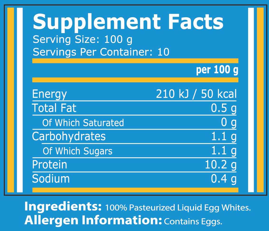 Нашият продукт е съставен изцяло на 100% от течен яйчен белтък. Без допълнителни подсладители! Без нищо добавено!