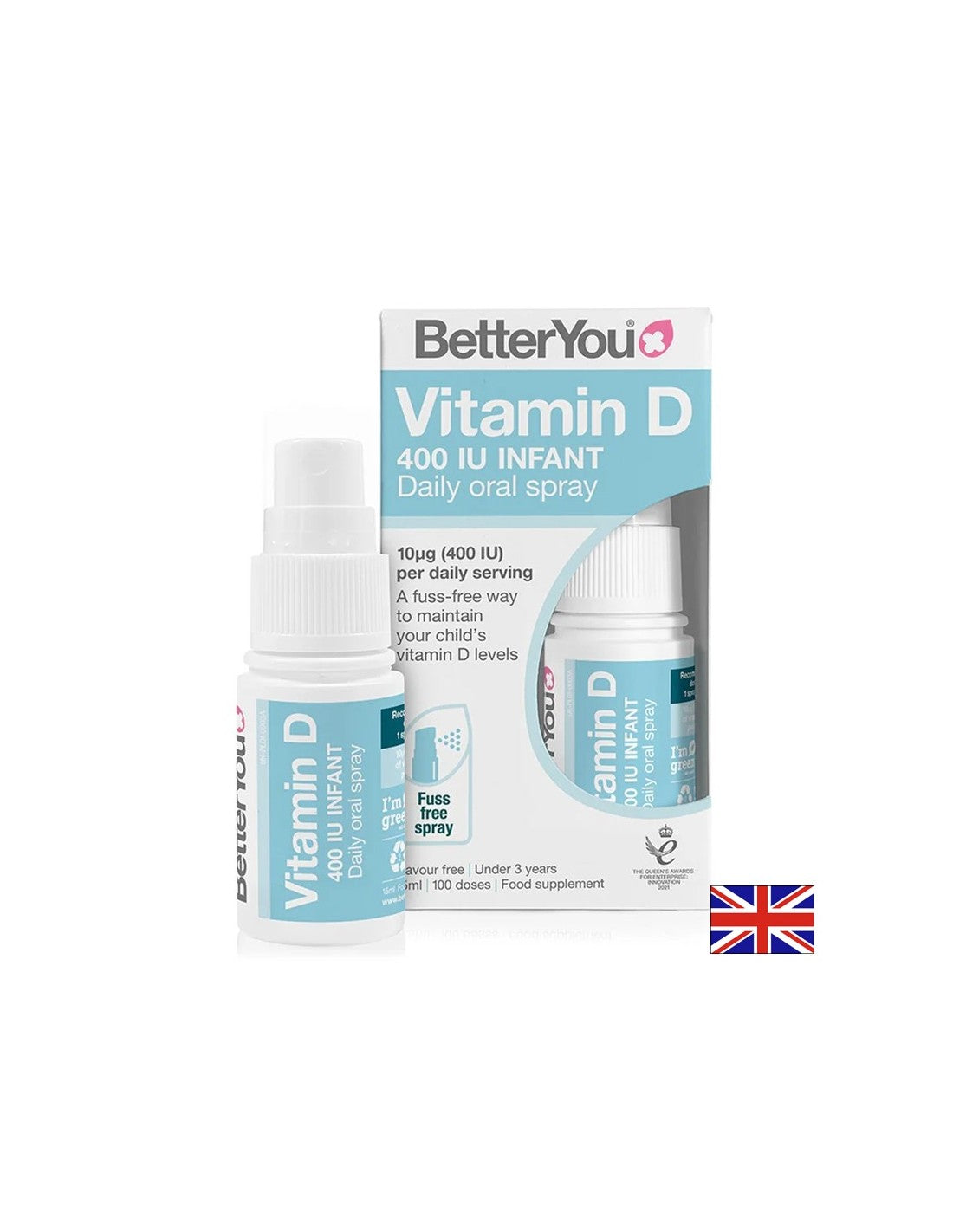 Нежна формула с витамин D3 за бебета и деца – подпомага нормалния растеж, развитието на костите и зъбите. Удобна дневна доза в спрей с кокосово масло, без палмови съставки, подходящ за вегани