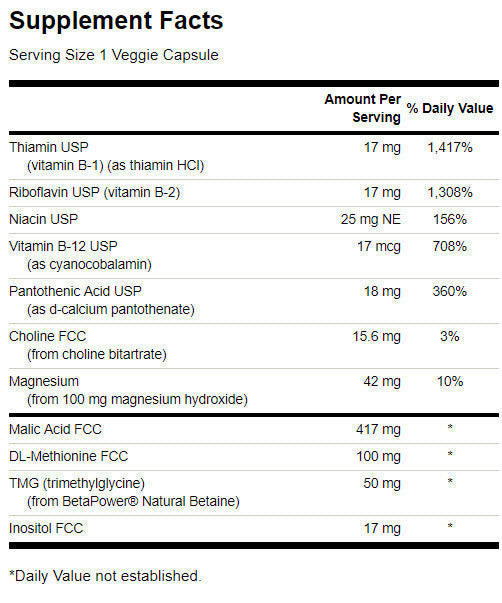 This formula actively supports neurotransmitter function. It includes malic acid, which ensures a healthy supply of oxygen to the muscles, and magnesium, which promotes muscle relaxation. The combination also includes methionine, trimethylglycine, B vitamins, and more.