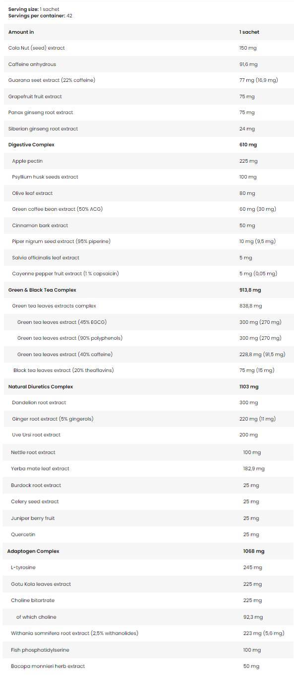 The product is rich in a metabolic complex that regulates the level of water in the body, which is especially important during competitions and training. The unique combination of active ingredients, including diuretic extracts, ensures not only fat loss, but also the elimination of excess water, making muscles more visible and the figure more expressive.