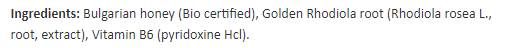 Родиола (златен корен) е адаптоген, известен с подмладяващото и тонизиращо действие, подпомагащо организма да се справя със стреса и да поддържа висока издръжливост. Комбинацията от високо качество мед и билкова формула засилва имунната защита, подкрепя дихателните, сърдечно-съдовите и стомашно-чревните функции, като същевременно предлага вкусен начин за прием без консерванти. Продуктът е подходящ за всички, които търсят естествена алтернатива на капсулите и желаят чиста билкова добавка в медена база.