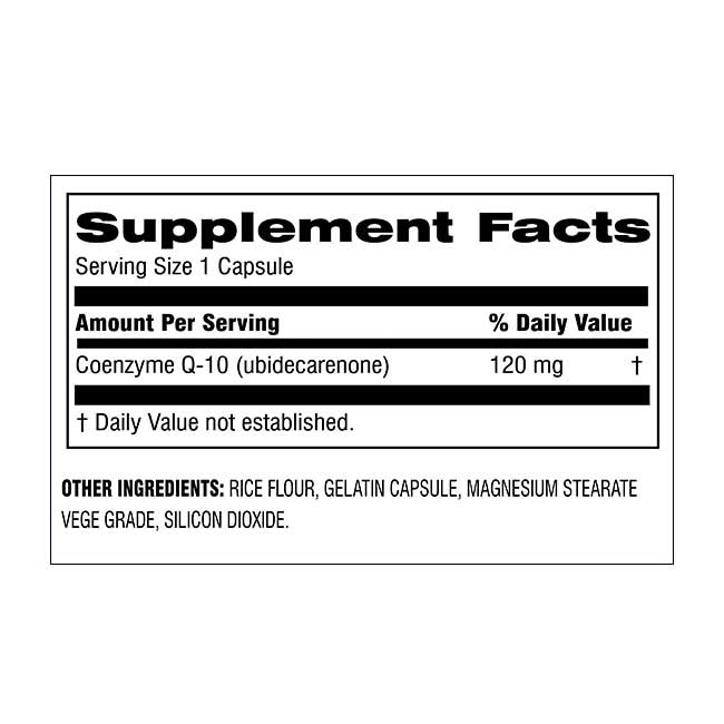 • Each capsule contains 120 mg of Coenzyme Q10 (ubidicarenone)
