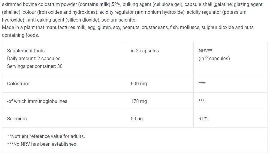 BIOTECH USA Colostrum / 60 Caps is a formula containing colostrum, a dairy product with an excellent nutritional profile that strengthens the body's natural defenses and has a beneficial effect on the entire body.