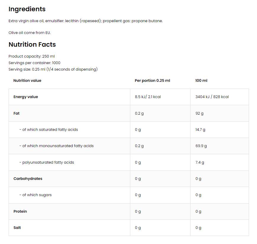 Olive oil cooking spray is an ideal kitchen aid that not only makes cooking easier, but also improves the healthiness of your meals. It reduces the need to add additional fat, which can help control calories without compromising on taste. Rich in monounsaturated fats and antioxidants, olive oil offers a number of health benefits, including supporting a healthy heart and reducing inflammation in the body.