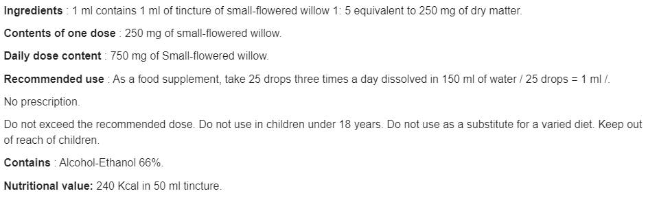Known for its healing properties, willow bark is a natural supplement that supports overall health. It is known for its anti-inflammatory properties, making it useful for various inflammatory conditions. This tincture is particularly effective for genitourinary health, as it can help with urinary problems and prevent infections. In addition, willow bark helps detoxify the body by supporting liver and kidney function. It can also have a positive impact on the digestive system, reducing discomfort and improving nutrient absorption.