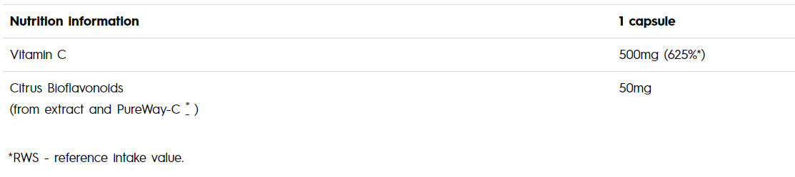 • Vitamin C in ester form for higher biological value and prolonged action.