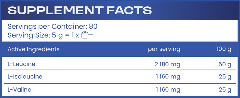 • Perfect 2:1:1 ratio of leucine, isoleucine and valine