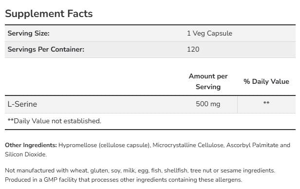 Supports brain and nervous system health: L-Serine is necessary for the production of phosphatidylserine, which is important for cell membranes in the brain.