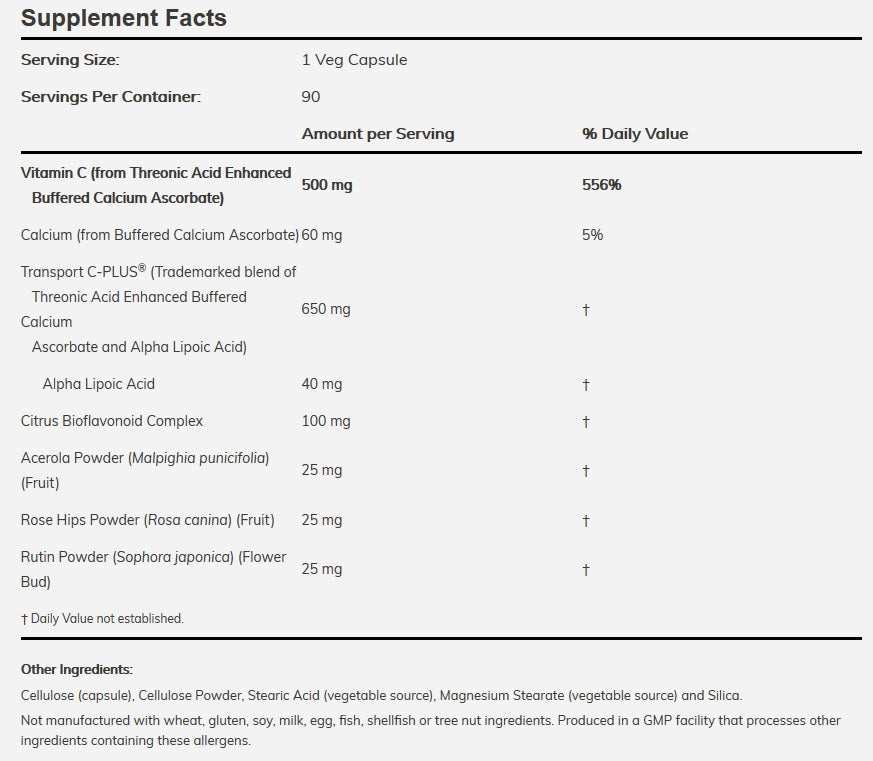 The secret of AlphaSorb-C lies in the combination of threonic acid (a metabolite of vitamin C) and buffered calcium ascorbate, which help to more effectively insert vitamin C into cells. Threonic acid has a proven effect on improving the cellular absorption of vitamin C, which increases its availability where the body can best use it. In addition, AlphaSorb-C contains alpha lipoic acid - a powerful antioxidant that helps regenerate vitamin C in the body and improves its absorption. Added bioflavonoids complement the antioxidant effect and support better absorption.