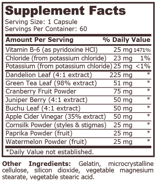 • Natural herbal diuretic to help eliminate fluids