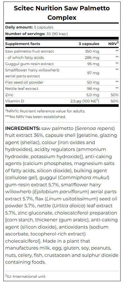 Saw Palmetto Complex from Scitec Nutrition is a specially developed formula that supports prostate health, hormonal balance, and the normal function of the male reproductive system.