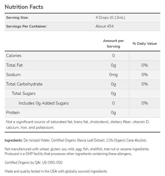 Течна Стевия (Liquid Stevia) е естествен продукт, който се добива от листата на растението Stevia Rebaudiana, което я прави предпочитана пред аспартама и други изкуствени подсладители. Доказано е, че Stevia Extract Liquid регулира нивата на кръвната захар. Stevia Extract Liquid също така подобрява настроението и ободрява.