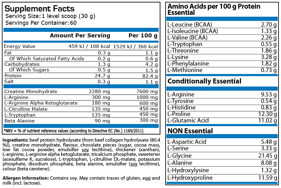 Телешкият протеин Beef Protein - 1800 Г е висококачествен протеин от телешко месо, предназначен за ускорено мускулно възстановяване и растеж, с ниско съдържание на мазнини и въглехидрати.