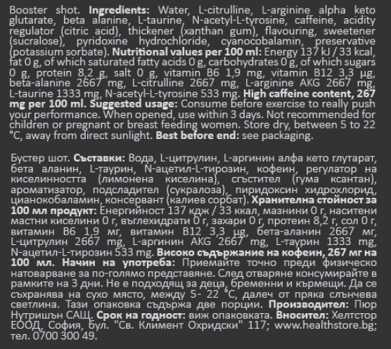 Pure Nutrition Booster Shot е силно концентрирана течна енергийна формула, която максимизира вашата тренировка и производителност без добавена захар.